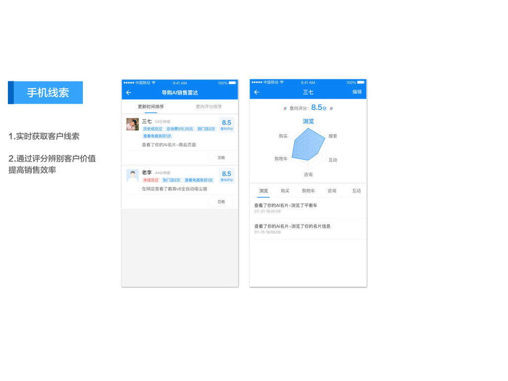 生活化类比:传统名片像一张“静态纸条”,AI销售名片助手则像一位“7×24小时在线的数字销售秘书”——客户扫码后,不仅能获取联系方式,还能与AI实时对话咨询产品信息;同时系统自动追踪客户行为,销售人员手机端实时收到“客户在某产品页面停留了30秒,建议推送优惠活动”等精准提醒-9。